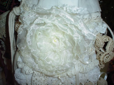 Although I don't sell my organza roses individually, Audrey of Mlle de Sombreuil does. She is located within my shoppe and has a very good eye.....and wonderful items for sale as well, including the lapel rose shown here. Her blog is all new, and she is just now working on it, but you can sneak a quick peek here to see some of her amazing creativity......she's already a favorite within the store, and it is clear to see why!